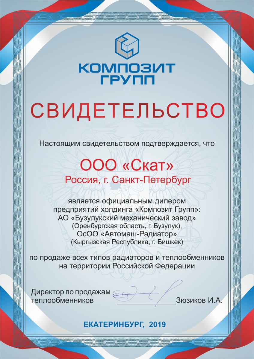 ООО Скат является официальным дилером предприятий холдинга «Композит Групп», по продаже всех видов радиаторов, теплообменников на территории Российской Федерации.